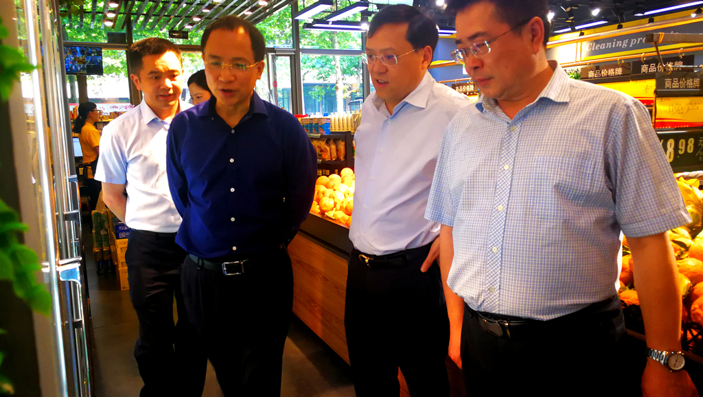 任曉春主任一行先后考察了老鄰居錦江區(qū)劼人路川師社區(qū)店、錦江區(qū)銀木街城市生活超市、溫江物流配送中心,聽取了老鄰居公司工作匯報。