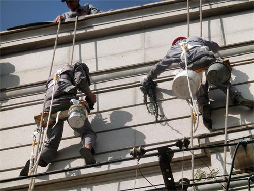 1.施工人員按照施工要求,對(duì)需要做防水處理的部位安置好安全吊繩,以便進(jìn)行高空作業(yè)。